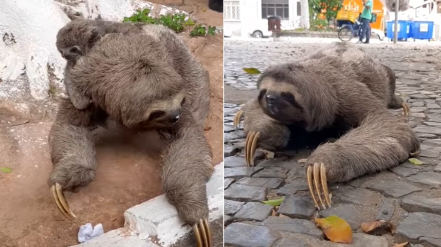 Moradores e visitantes de Teófilo Otoni, em Minas Gerais, foram surpreendidos pela grata visita de dois bichos-preguiça, na praça Tirandentes, no centro da cidade.
