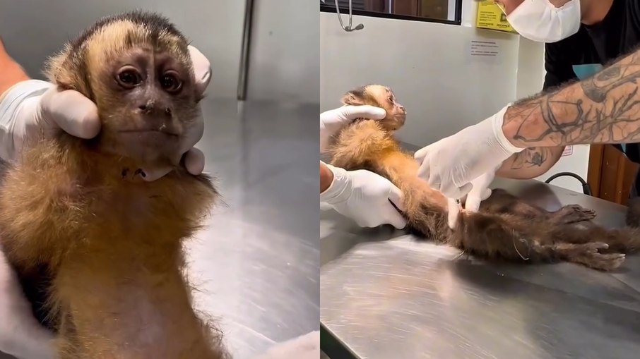 A fêmea de macaco-prego deve passar por uma cirurgia nos próximos dias. Segundo os veterinários do instituto, há possibilidade de que ela se recupere e consiga voltar a andar.