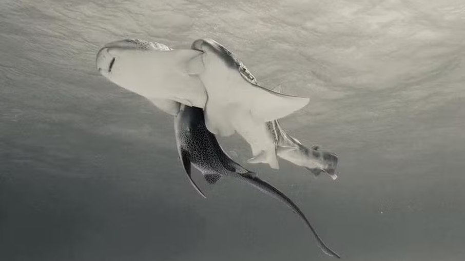 Pesquisadores registraram pela primeira vez na natureza um acasalamento entre três tubarões-leopardo, dois machos e uma fêmea, nas águas da Nova Caledônia, território francês no Pacífico. O flagrante foi feito em setembro e mostra um comportamento reprodutivo considerado raro para a espécie ameaçada.